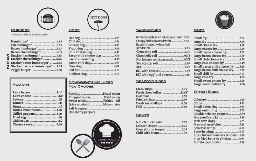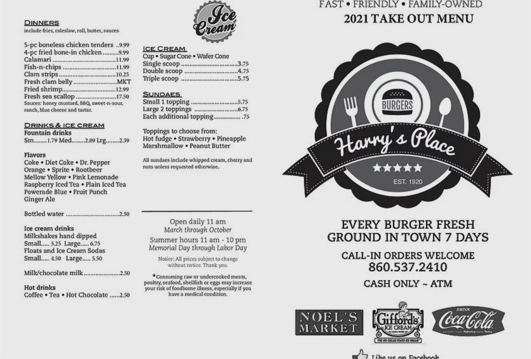 Harry's Place is a hamburger drive-in in Colchester, CT. Seasonal open air restaurant open March-October. Cash only, ATM on site.