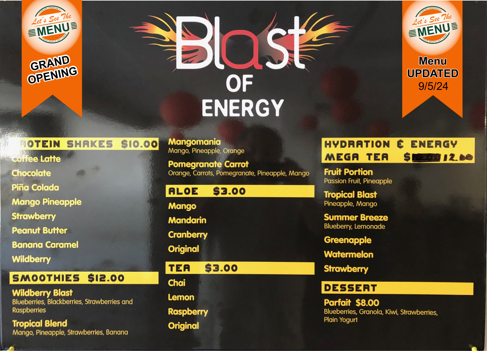 We proudly feature Herbalife products, including our energizing protein shakes, revitalizing smoothies, and invigorating teas. Plus, we offer aloe-based drinks to enhance your wellness journey. At Blast of Energy, we're committed to helping you achieve your health goals with every sip. Come visit us and experience a blast of energy for yourself!