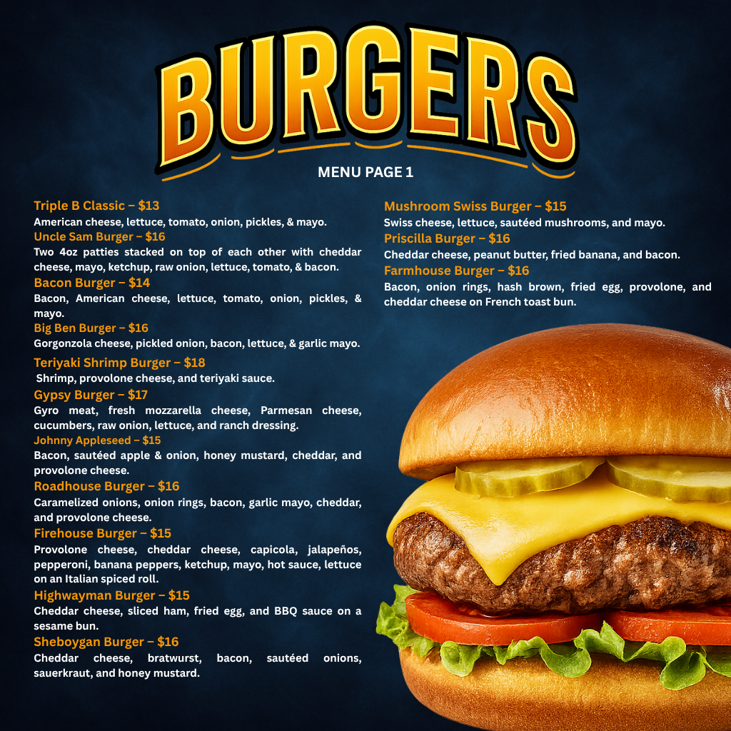 Welcome to Triple B’s—Gales Ferry’s go-to spot for burgers, beer, and good times.