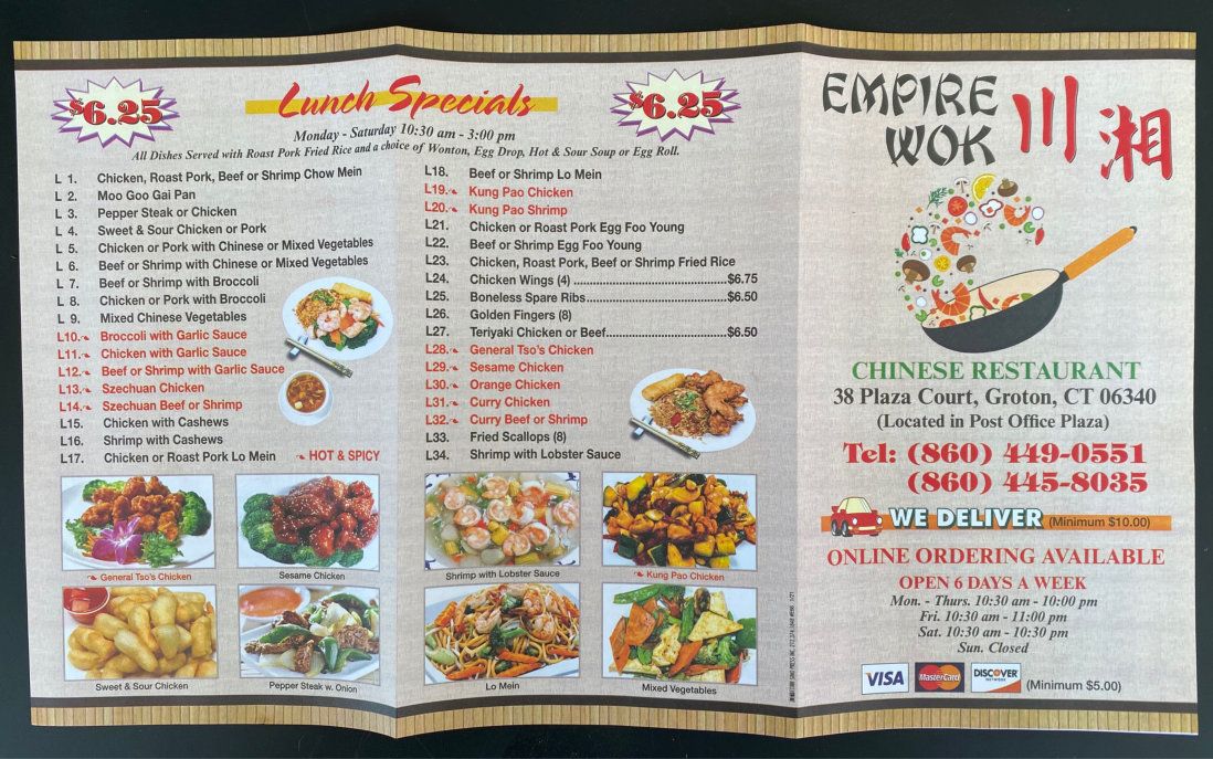 Empire Wok Chinese Restaurant offers delicious dining, takeout and delivery to Groton, CT.
