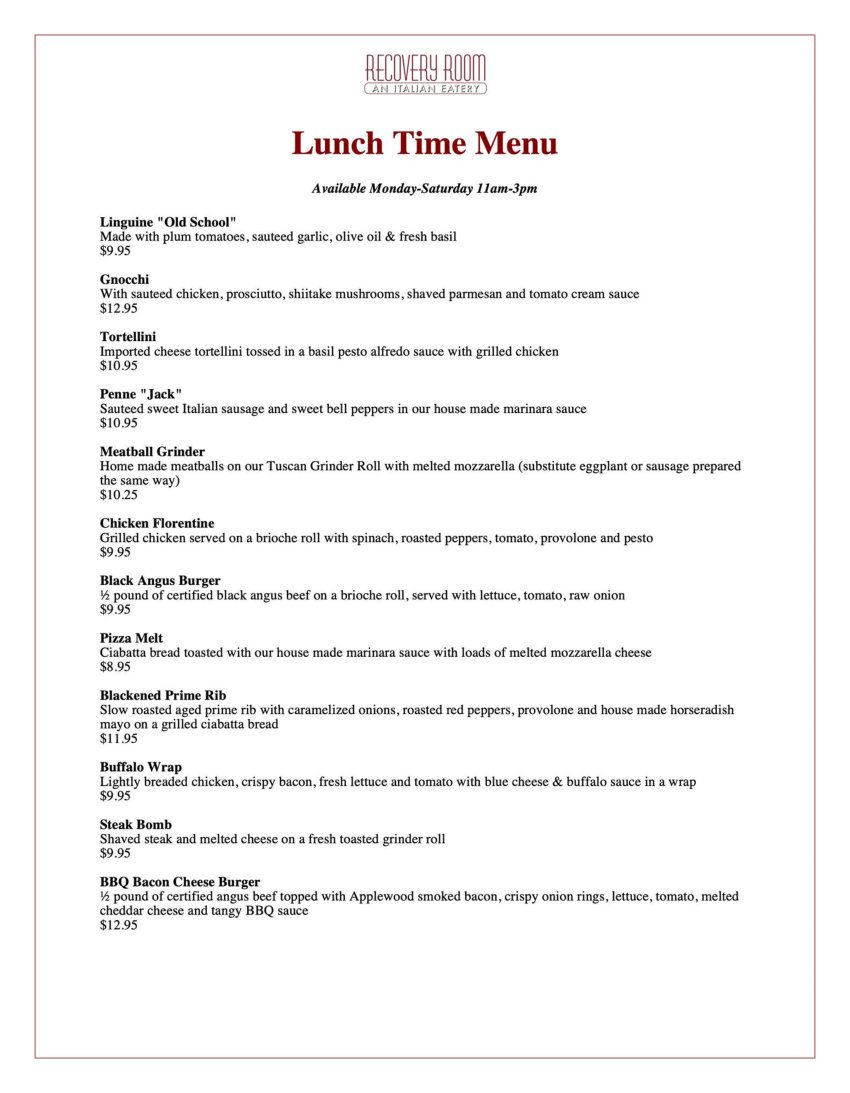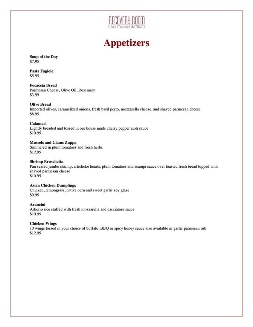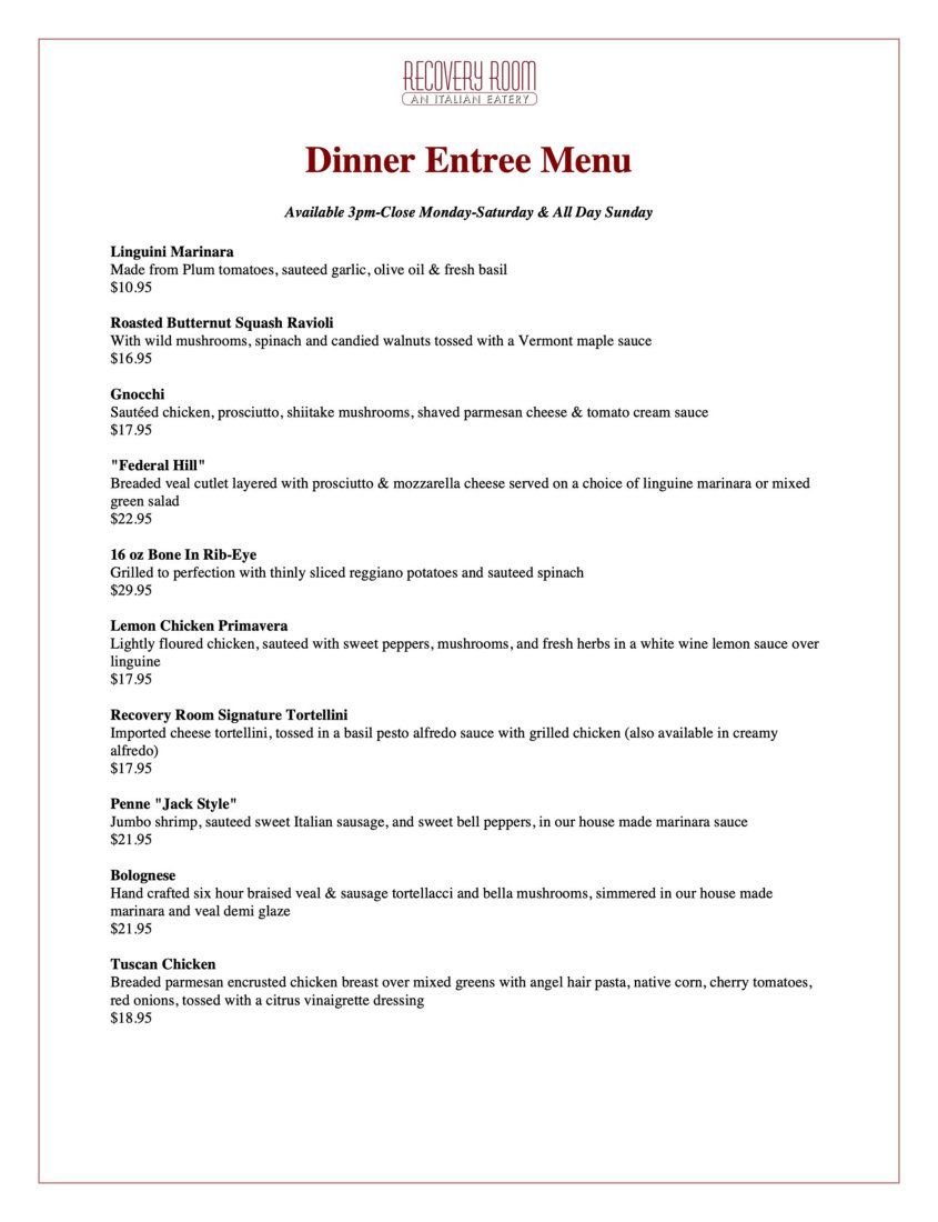 Located in New London, Ct across from Lawrence and Memorial Hospital, The Recovery Room restaurant has been a favorite among locals for decades!