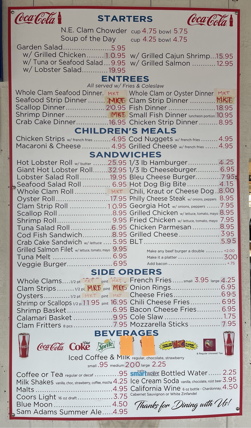 We are a family oriented seasonal seafood restaurant with a beautiful view of the water. People love our lobster rolls, onion rings and clam strips.
