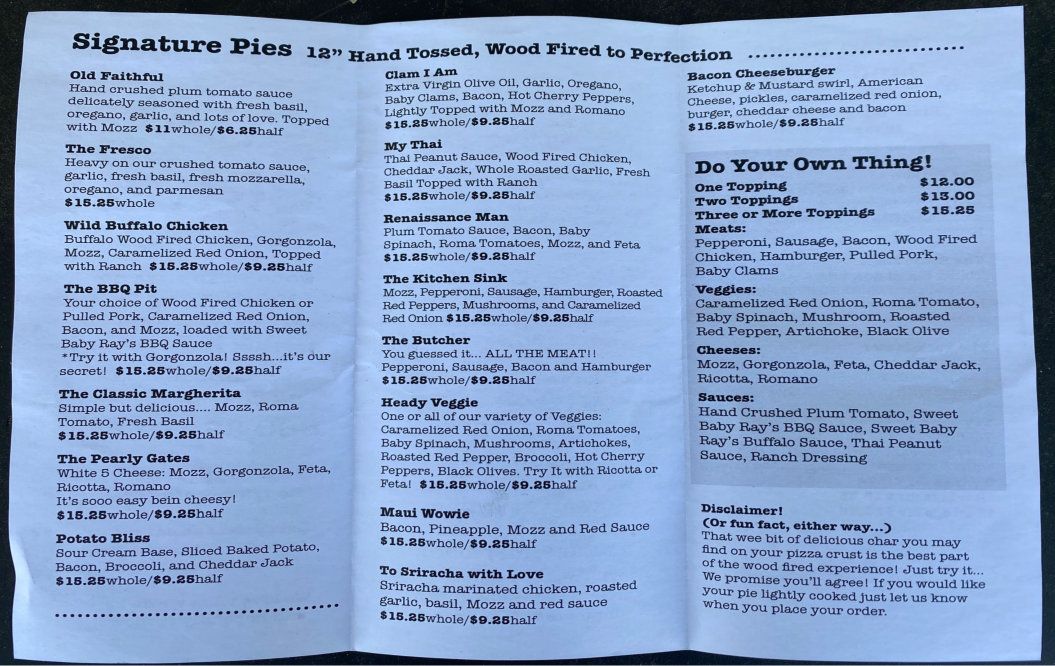 A full service wood fired pizza company with a roadside permanent location featuring seasonal outdoor dining and entertainment, as well as mobile catering